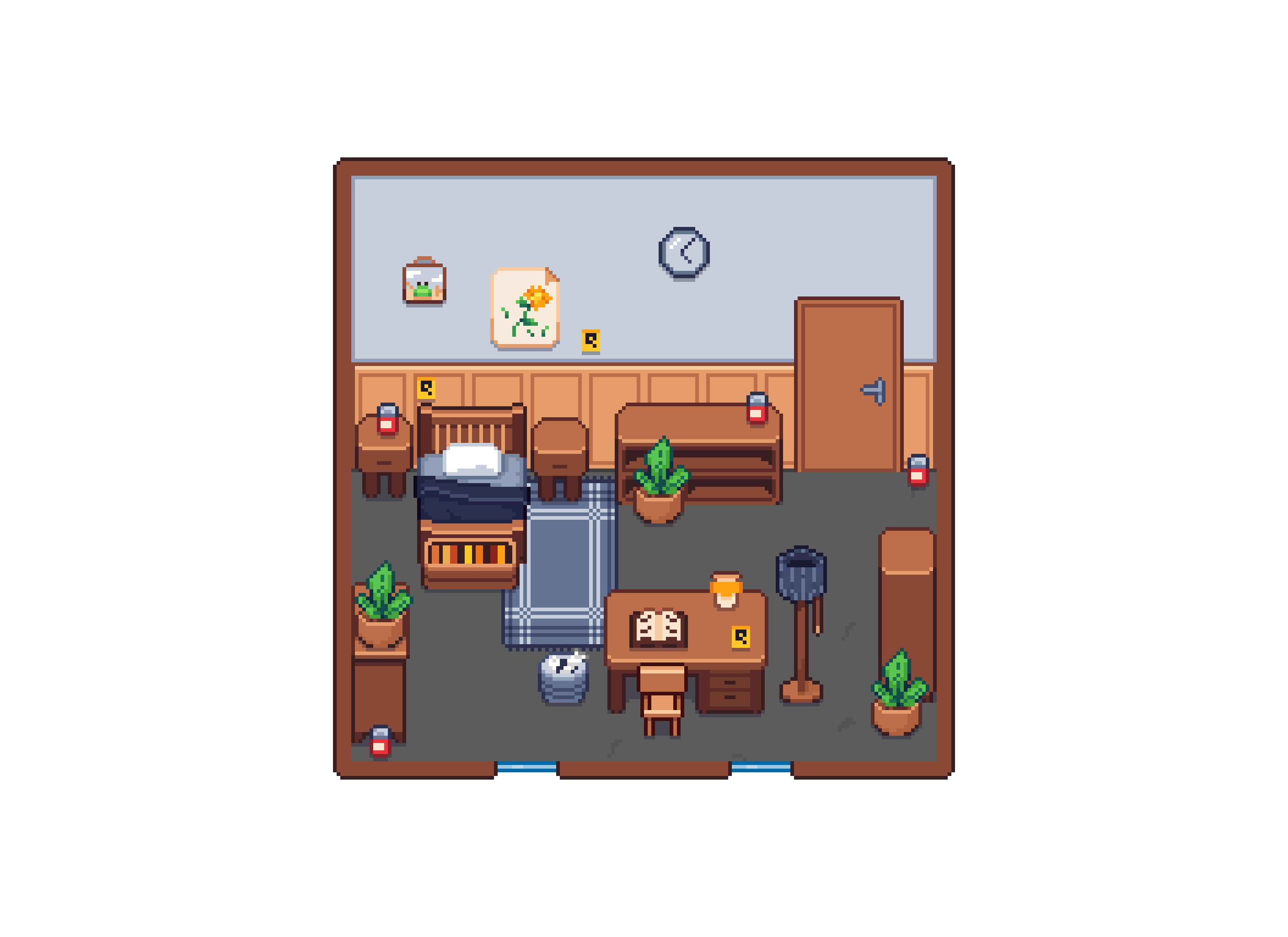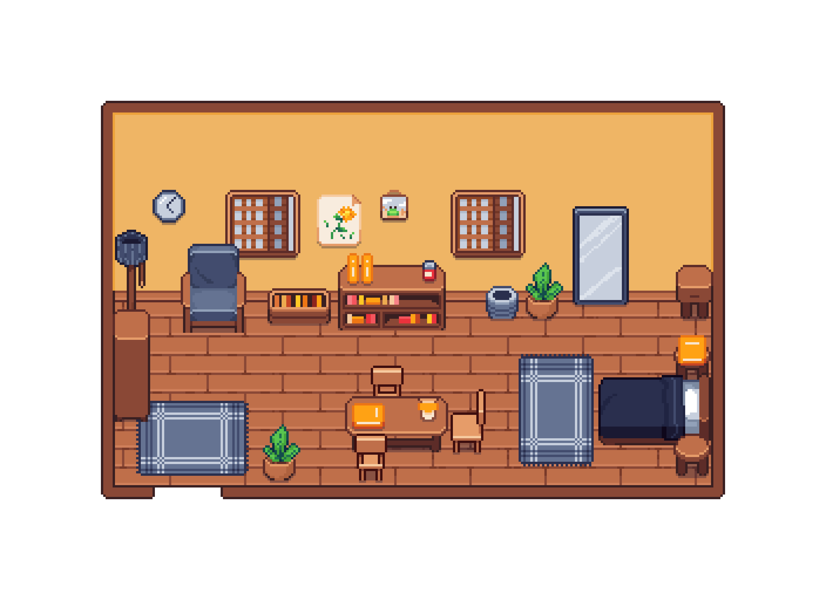 This asset pack includes a variety of bedroom essentials, perfect for RPGs, simulation, or casual games.